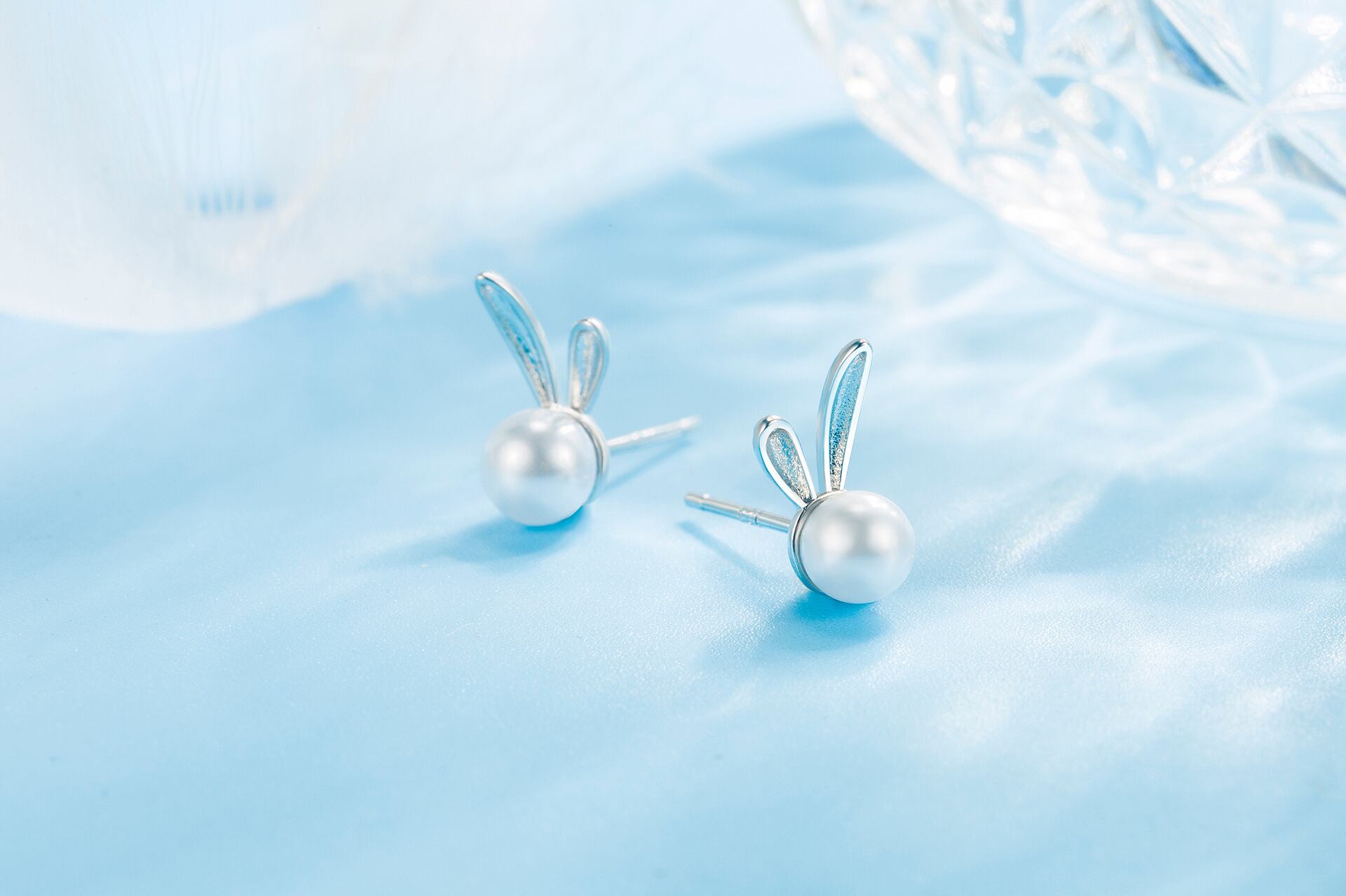 送料無料 NEHZY シルバーメッキ レディース ジュエリー 淡水パール シンプル ホワイトラビット スタッドピアス イヤリング 真珠 リング 指輪 銀 AE121233225515484346553