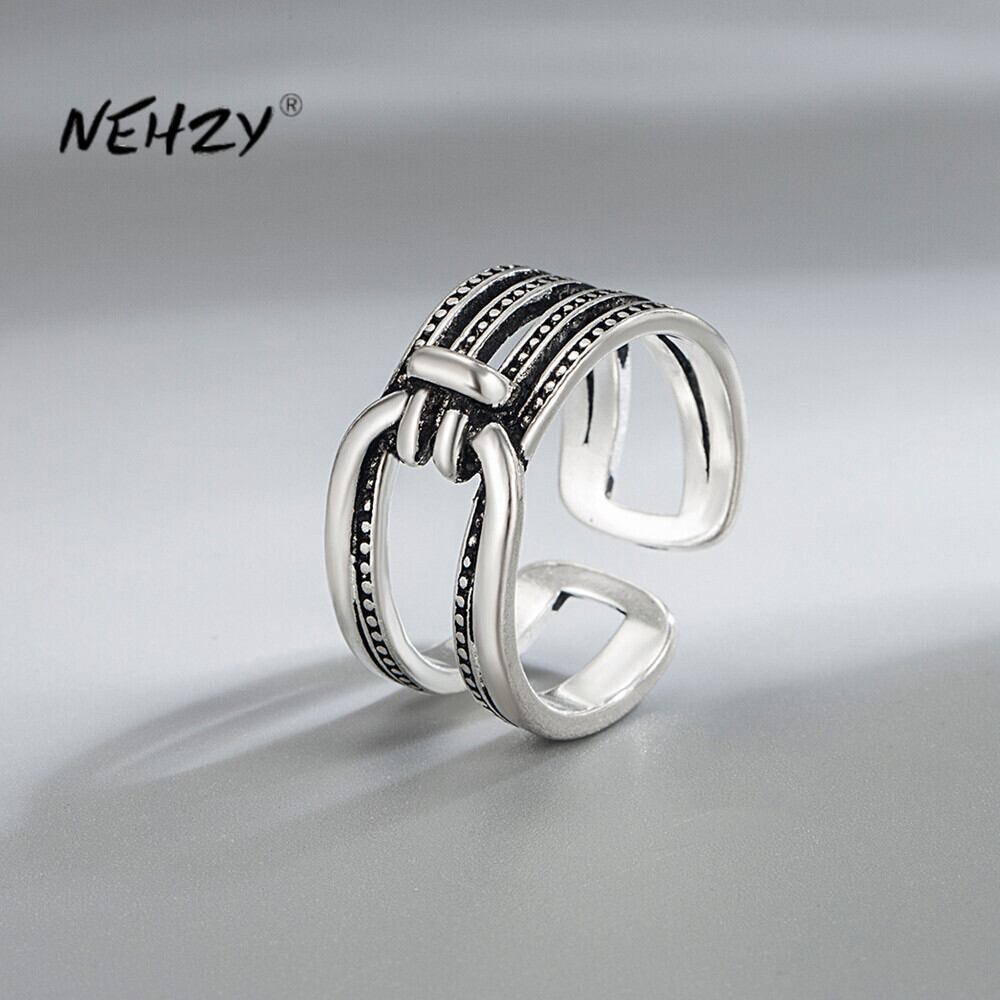 送料無料 NEHZY シルバーメッキ女性ジュエリーレトロクリエイティブ黒中空開口部サイズ調節可能なリング ブラック アジャスタブル 指輪 銀 AE121233225555992033864