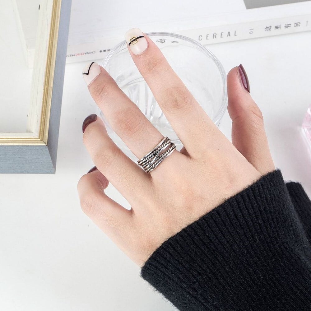送料無料 NEHZY シルバーメッキ女性ジュエリーレトロクリエイティブブラックチェーン開口部サイズ調節可能なリング アジャスタブル 指輪 銀 AE121233225577650760176