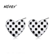 送料無料 NEHZY シルバーメッキレディースジュエリーシンプルレトロエポキシ黒と白のチェック柄ハートスタッドピアス ホワイト ブラック イヤリング リング 指輪 銀 AE121233225580059333693