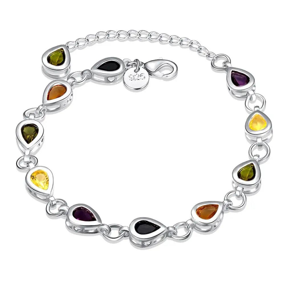 送料無料 ファイン 925 スターリングシルバーエレガントなチャームブレスレットジルコンチェーンクリスタルストーンジュエリーファッション女性の結婚式の女性かわいい 大人ガーリー スウィート キュート カジュアル 銀 AE121233556664168156656
