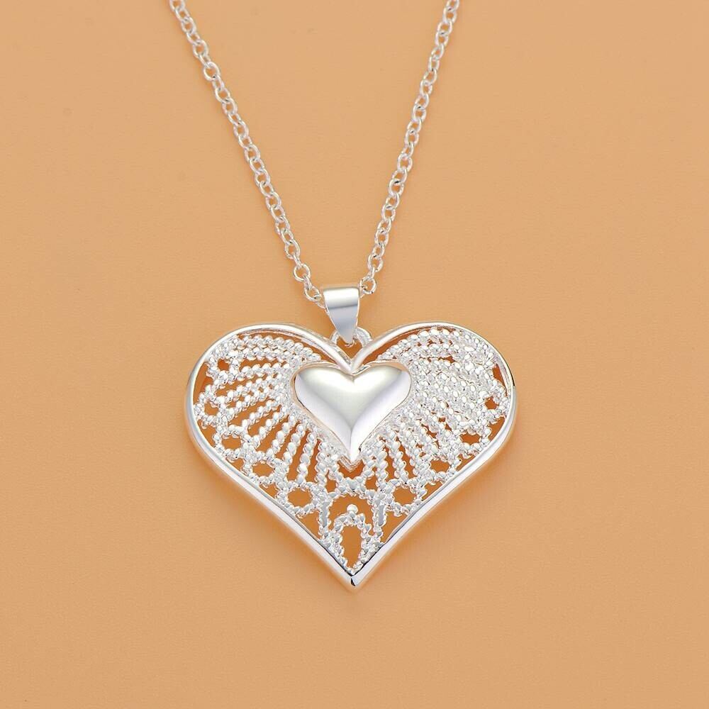 送料無料 45 センチメートル 925 シルバーペンダントネックレス美しいファッションチャームハート女性の結婚式のチャームかわいい女性ジュエリー レース 銀 AE121233556641407898727