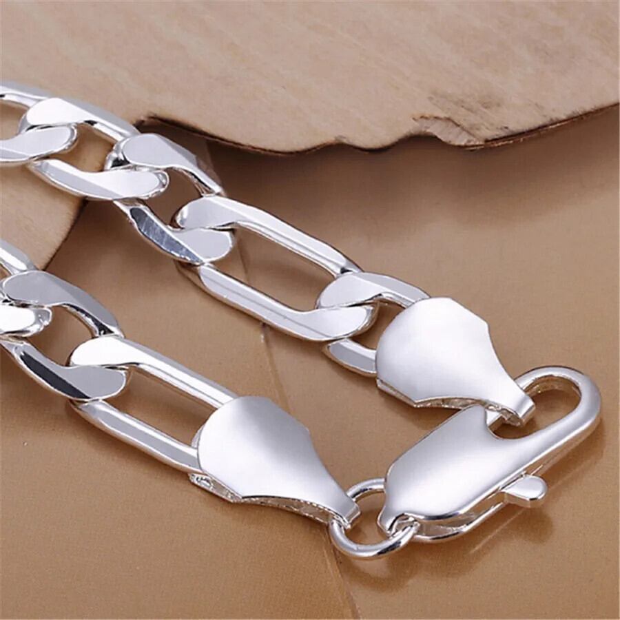 送料無料 10 ミリメートル 925 スターリングシルバーソリッドブレスレットチェーン女性男性シルバーカラージュエリーファッション美しいフィガロチェーン結婚式 ソリッドカラー 銀 AE121233556687922333976