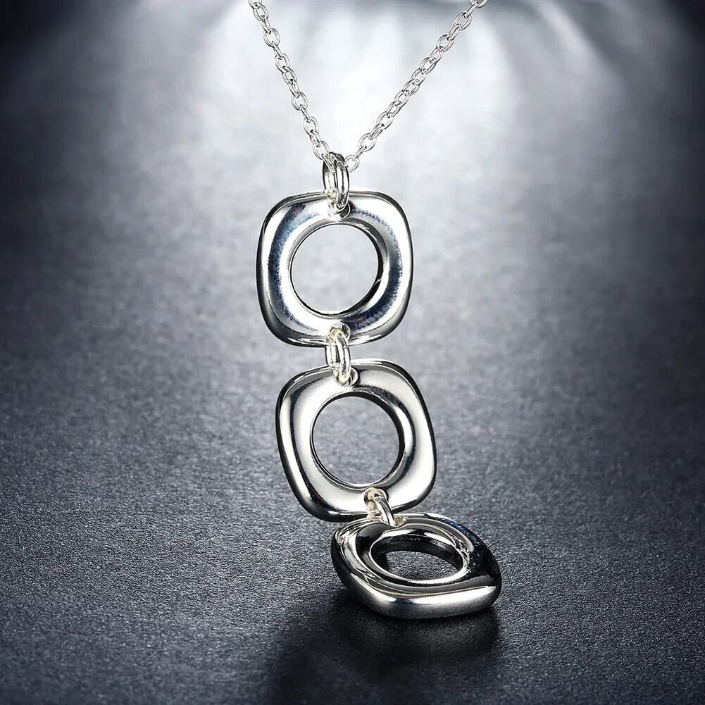 送料無料 45 センチメートル 925 スターリングシルバーネックレス女性 3 スクエアペンダント 18 インチクリスマスパーティージュエリー レース 銀 スクウェア AE121233556664355158730