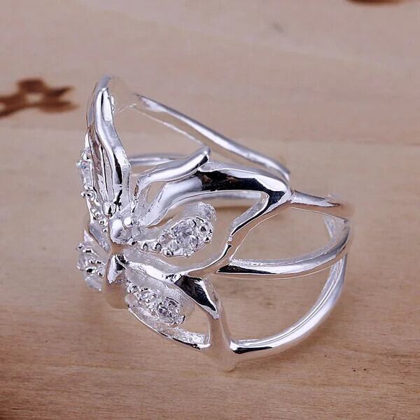 送料無料 925 スターリングシルバークリスタルリング結婚式熱い販売女性クリスマスギフト美しいトレンディなジュエリー 指輪 銀 AE121233556631173800849