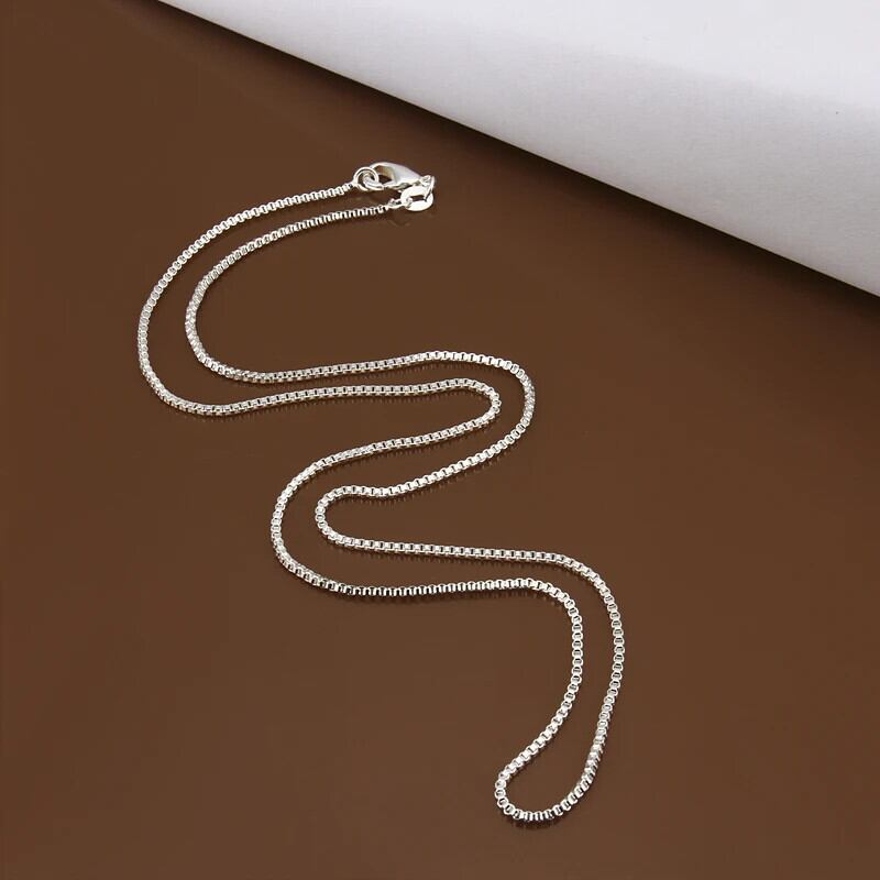 送料無料 925 スターリングシルバーネックレスソリッドチャームウェディングパーティー 1.5 ミリメートルボックススタイルチェーンかわいい女性男性ジュエリー レース 大人ガーリー スウィート キュート カジュアル ソリッドカラー 銀 AE121233556651742756326
