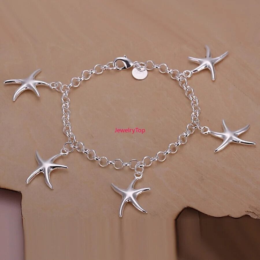 送料無料 美容ファッション最高品質 925 スターリングシルバージュエリーチャーム星ブレスレットかわいいチェーン女性レディース JSHH193 大人ガーリー スウィート キュート カジュアル 銀 AE121233556697243281559