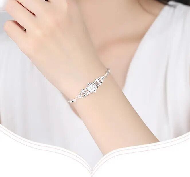 送料無料 ファッション美しい 925 スターリングシルバーソリッドフラワーブレスレット女性チェーンチャームクリックウェディングジュエリー卸売 ソリッドカラー フラワーデザイン 銀 AE121233556610805197328