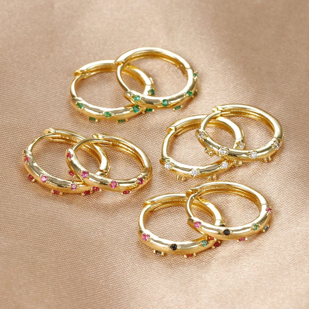 送料無料 ステンレス鋼のカラフルなジルコン小さなフープイヤリング女性ゴールドカラーラウンド Huggie 軟骨ピアスイヤリングファインジュエリー 指輪 AE1212332233271380440706