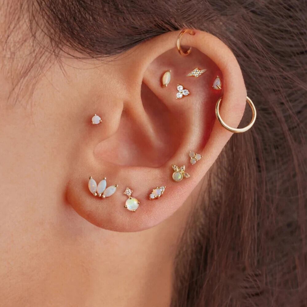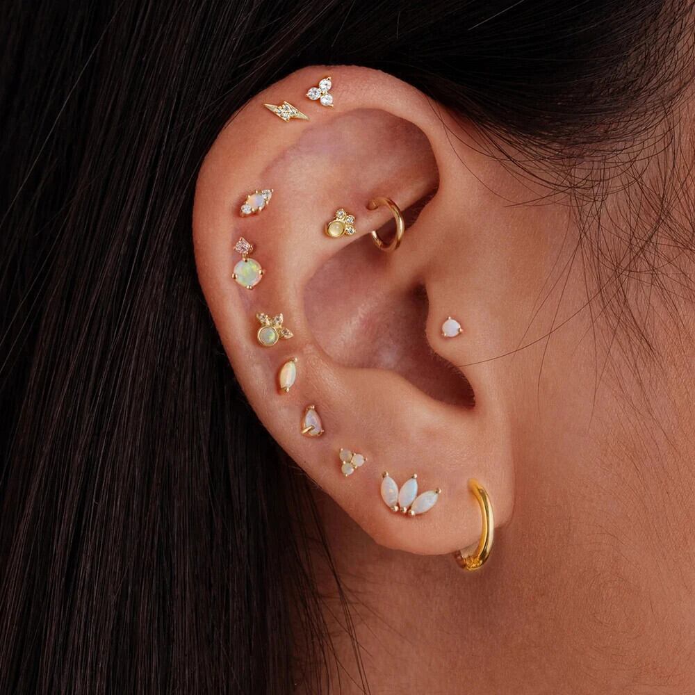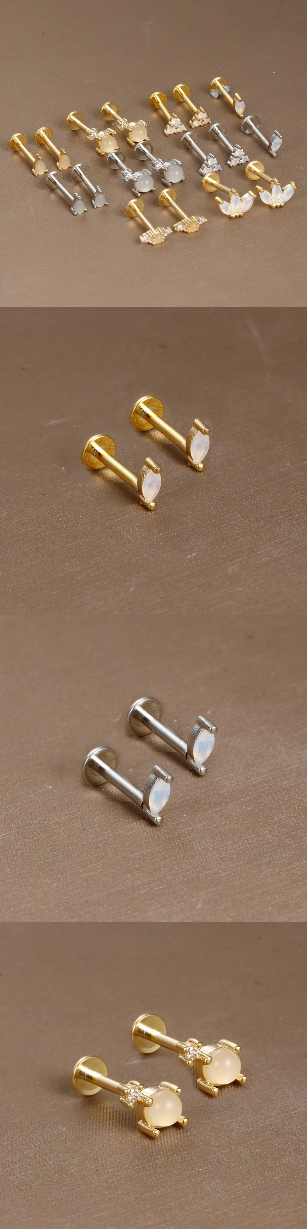 送料無料 2 個ステンレス鋼オパールトライアングルクラウン耳スタッドイヤリング女性リトルハギーズパンクユニセックスロックイヤリングピアスジュエリー 蛋白石 AE1212332233279658129285