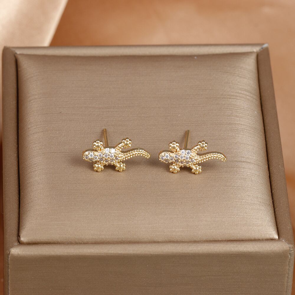 送料無料 2 個ステンレス鋼小さな耳スタッドピアス女性動物トカゲヤモリパンクユニセックスロックイヤリングピアスジュエリー 指輪 AE1212332233298262244300