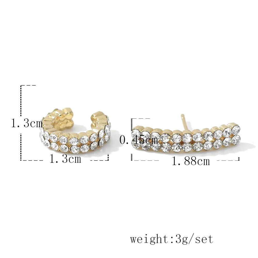 送料無料 2 ピース/セットジルコンカフスタッドピアスセット女性ローズゴールドカラーイヤリングジュエリービジュー 指輪 AE1212332233284153658574