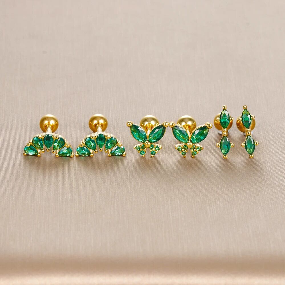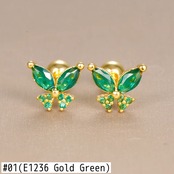 送料無料 蝶グリーンスタッドピアス女性ステンレス鋼ヘリックス珠ピアスイヤリング結婚式婚約美的 Jewerly aretes 指輪 AE1212332233256628995001