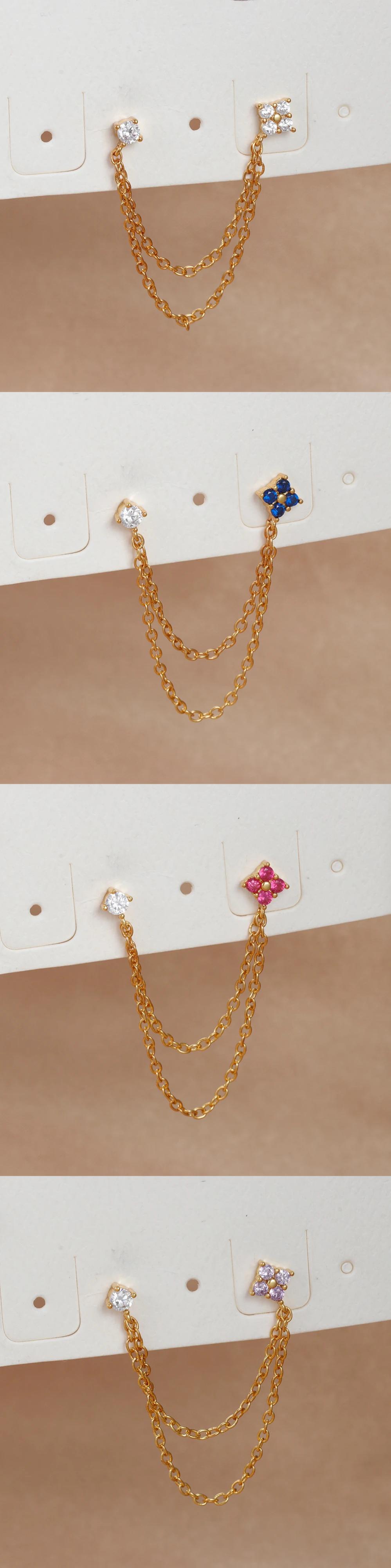 送料無料 ダブル電話チェーンぶら下げイヤリング女性ステンレス鋼ムーンスクエア耳スタッドイヤリングピアスジュエリー 指輪 スクウェア AE1212332233254644088305