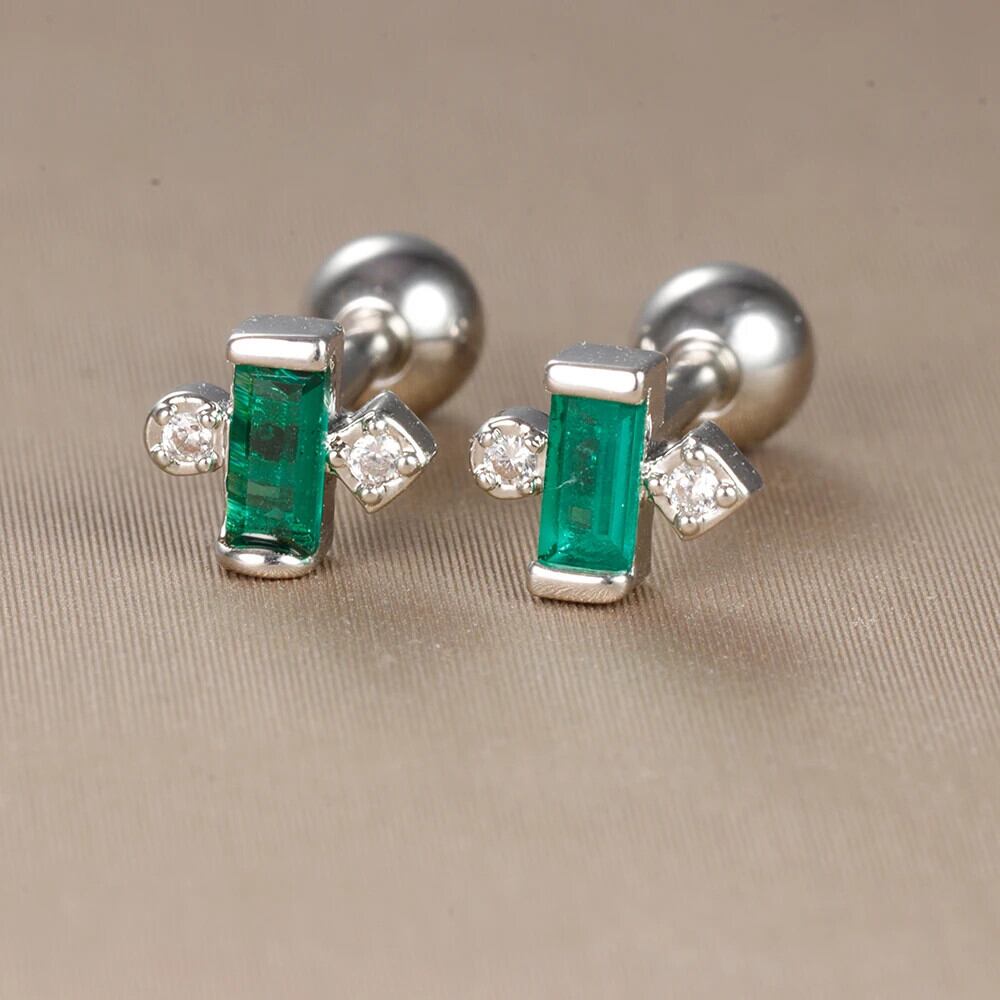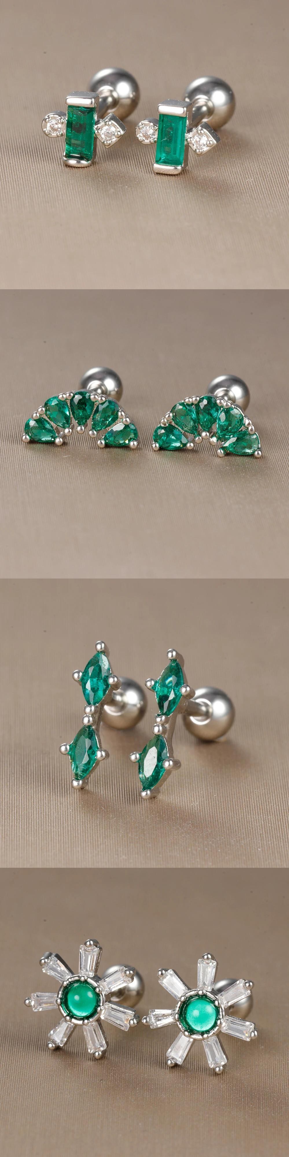 送料無料 2PC ステンレス鋼リトルスタッドイヤリング女性小さなグリーンクリスタルジルコニア軟骨ヘリックス耳珠ピアスイヤリングジュエリー 指輪 風信子石 AE1212332233298170888340
