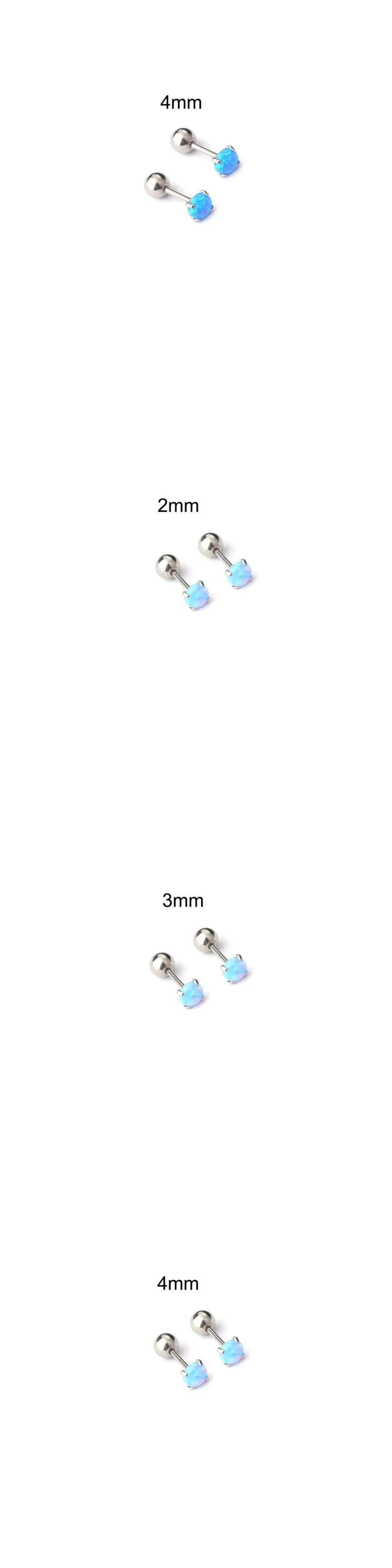 送料無料 2/3/4 ミリメートルステンレス鋼ブルーオパール小さなスタッドピアス女性男性小さな耳骨爪軟骨パンクイヤリングピアスジュエリー 蛋白石 指輪 AE1212332233292258898668