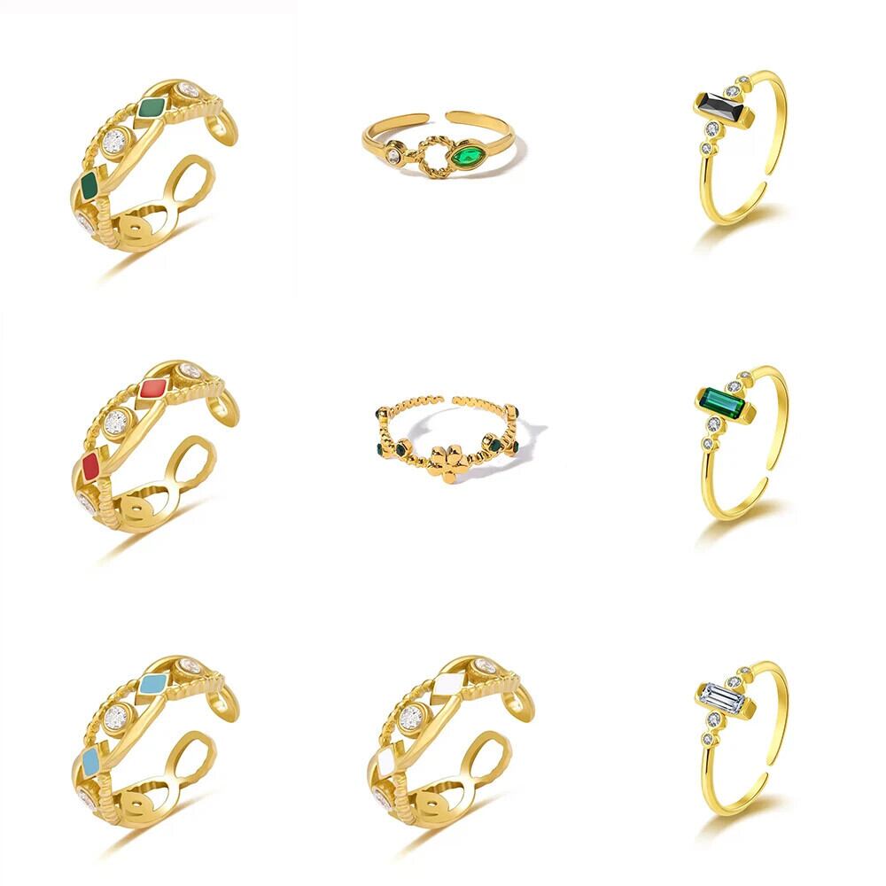 送料無料 ヴィンテージグリーンクリスタルリング女性ゴールドカラーメッキステンレス鋼幾何学的な高級 Anillos 女性ジュエリーギフトバゲ 指輪 ビンテージ AE1212332233250262636402