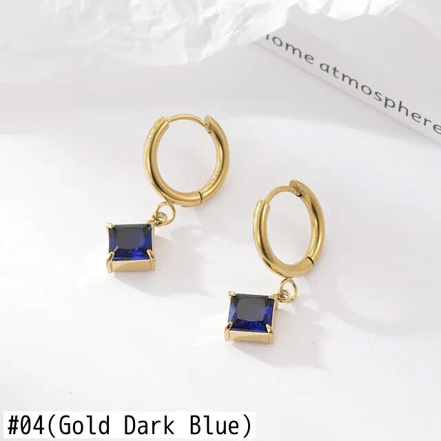 送料無料 多色ジルコンハギースクエア小さなフープイヤリング女性小さなステンレス鋼ジオメトリペンダントピアスジュエリー 指輪 スクウェア AE1212332233215782032161