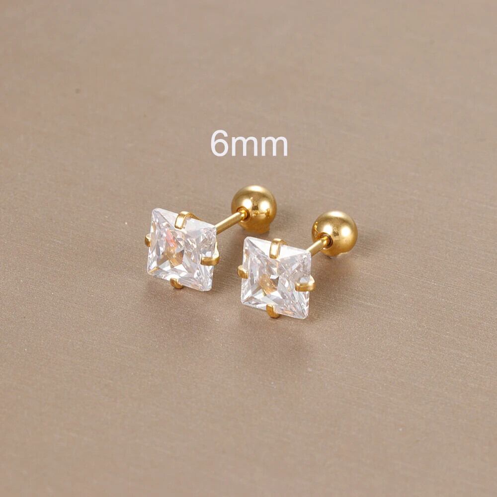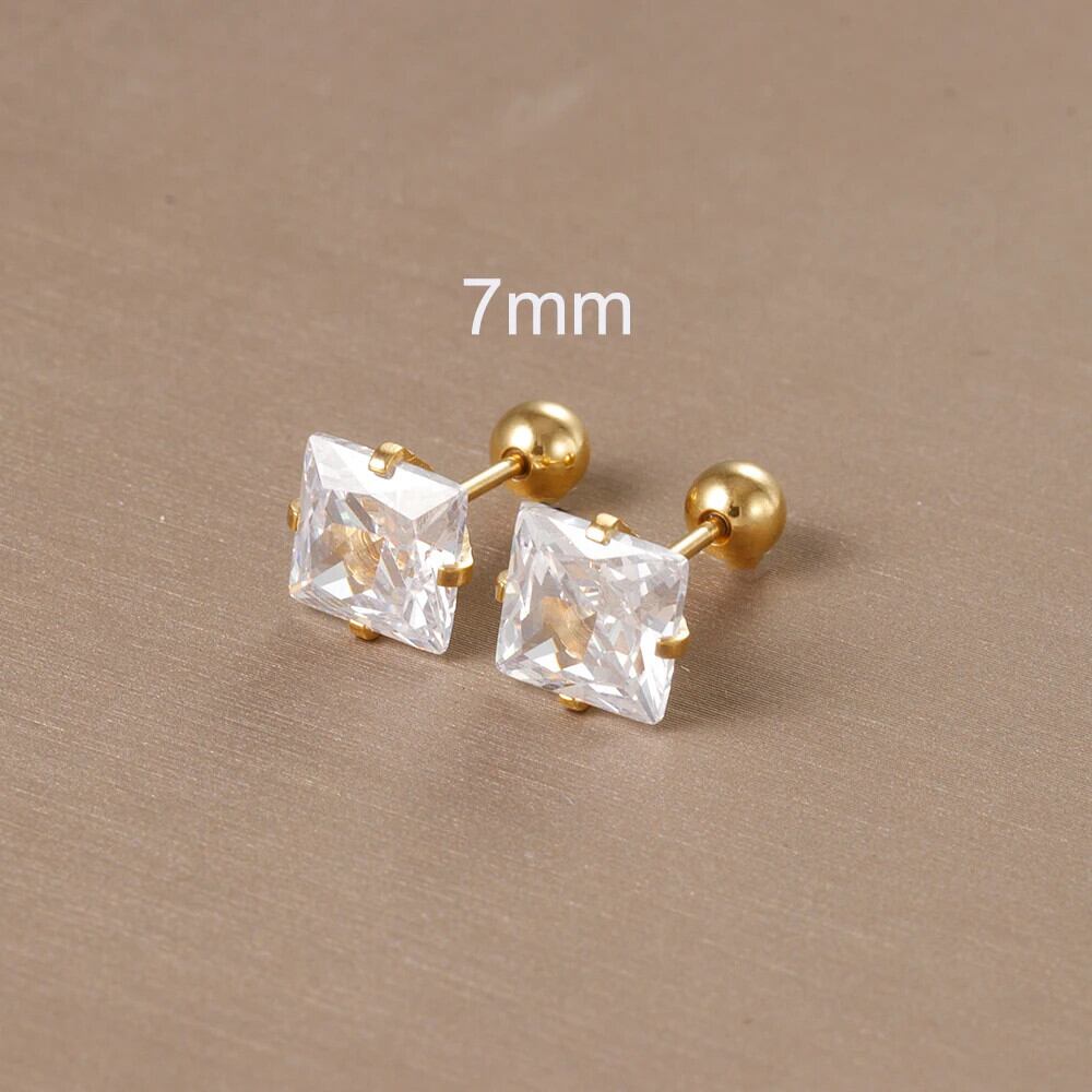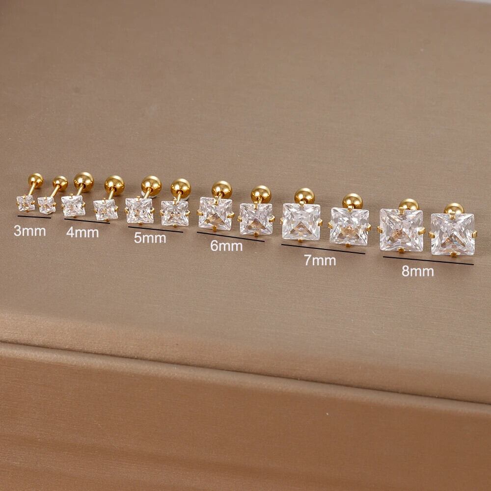 送料無料 2PC ステンレス鋼光沢のあるジルコンスクエアイヤリング女性 3/4/5/6/7/8 ミリメートルヘリックス珠軟骨ピアスジュエリー 指輪 スクウェア AE1212332233269336599236