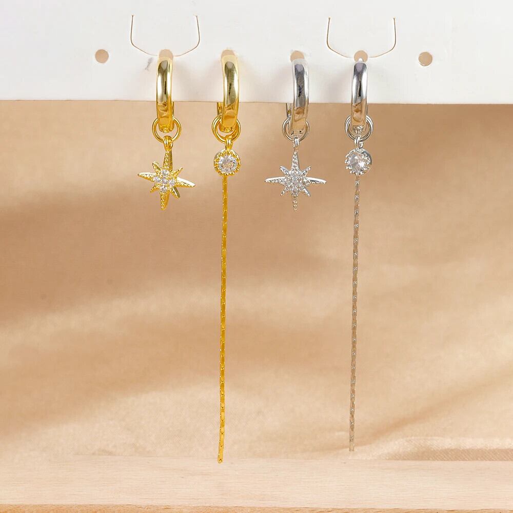 送料無料 ステンレス鋼ゴールドメッキ CZ スターフープイヤリング女性ラウンドディスク Tel 非対称イヤリングウェディングジュエリー 指輪 AE1212332233261660966842