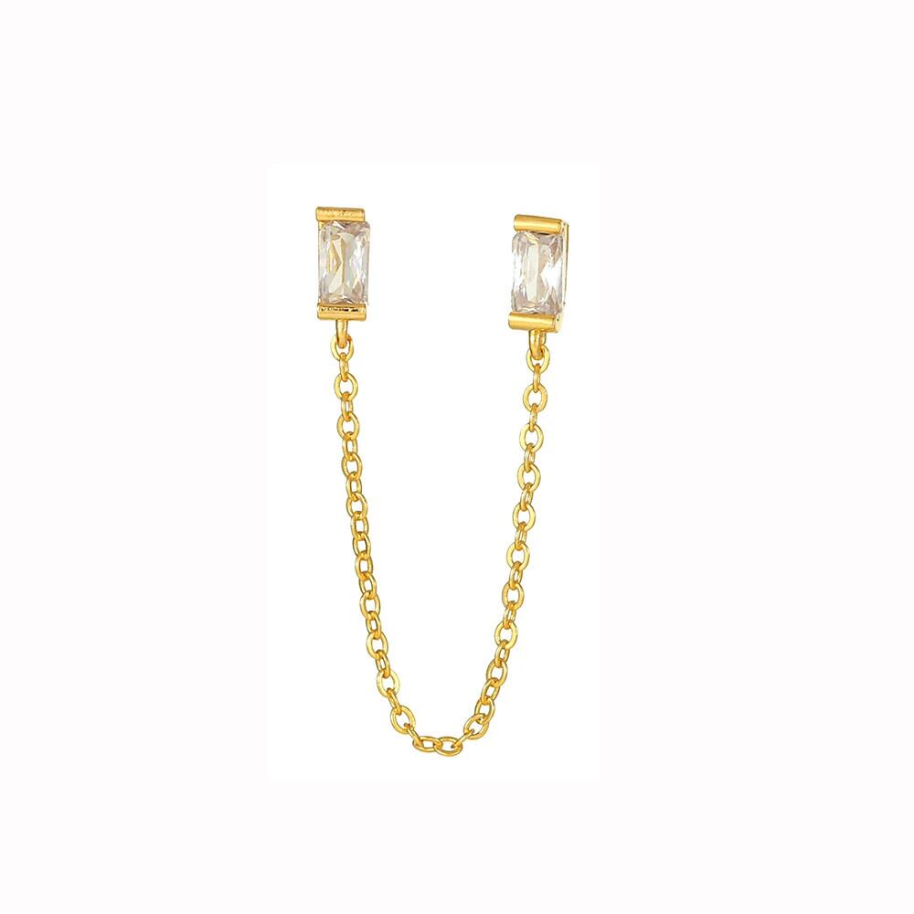 送料無料 ステンレス鋼ゴールドカラークリスタル CZ スクエア小さな耳スタッドイヤリング女性チェーン邪眼ピアスパンクジュエリー スクウェア AE1212332233228721853090