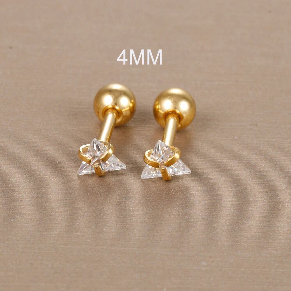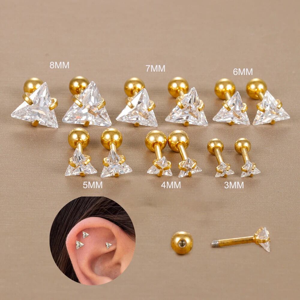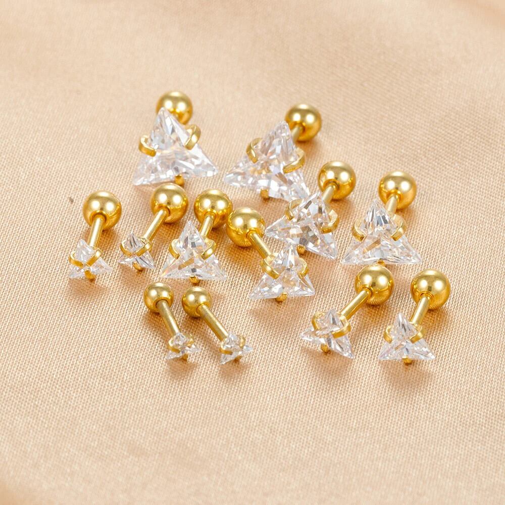 送料無料 2PC ステンレス鋼最小限のクリスタルトライアングルピアスイヤリングヘリックススタッド耳珠軟骨スタッドイヤリングクリスマスジュエリーギフト 指輪 AE1212332233290657936767