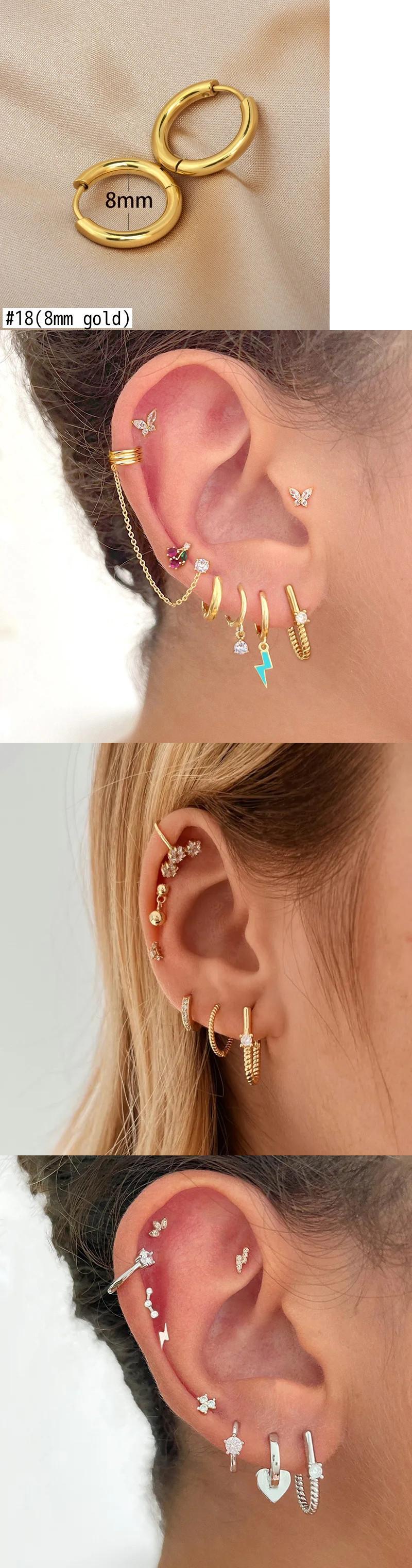 送料無料 2PC ステンレス鋼最小限のクリスタル蝶の耳のスタッドイヤリング女性小さならせんスタッド耳珠軟骨ピアスジュエリー AE121233223323064022229
