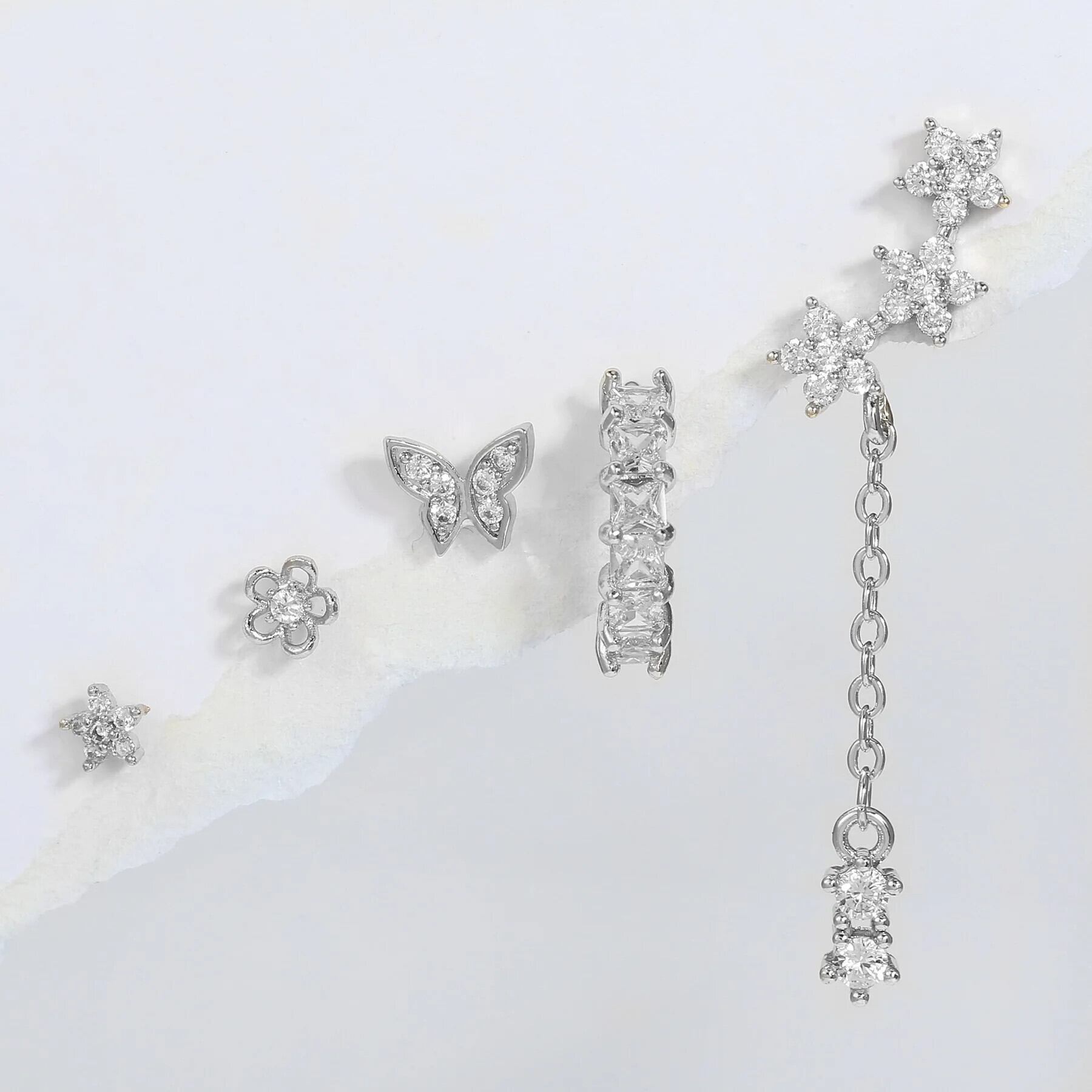 送料無料 新ステンレス鋼最小限のクリスタル蝶チェーン耳スタッドイヤリング女性ヘリックススタッド耳珠軟骨ピアスジュエリー AE1212332233276296332691