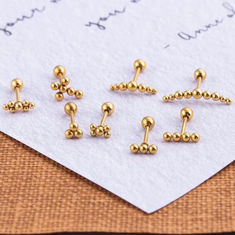 送料無料 2 個ステンレス鋼ゴールドカラークロス小さな耳スタッドピアス女性男性小さならせんスタッドパンクイヤリングピアスジュエリー 指輪 AE1212332233276029474236