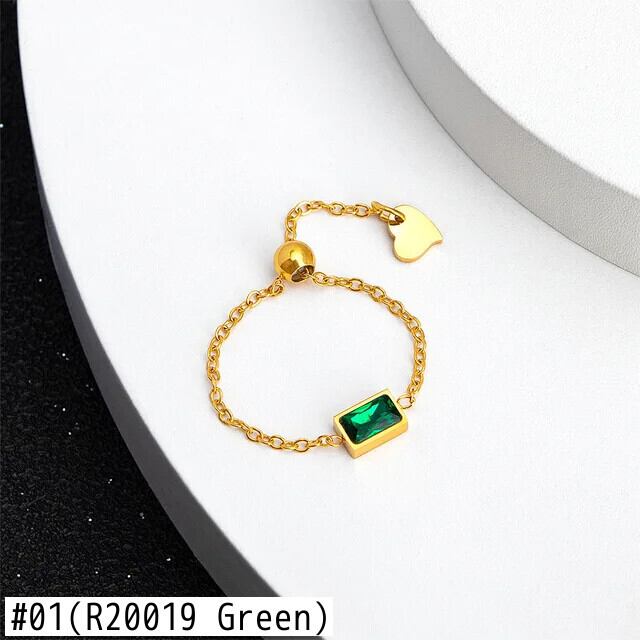 送料無料 ステンレス鋼チェーングリーンブラックジルコン調節可能なリングクリエイティブ電話スクエア指輪誕生日ジュエリー アジャスタブル スクウェア AE1212332233271855412602