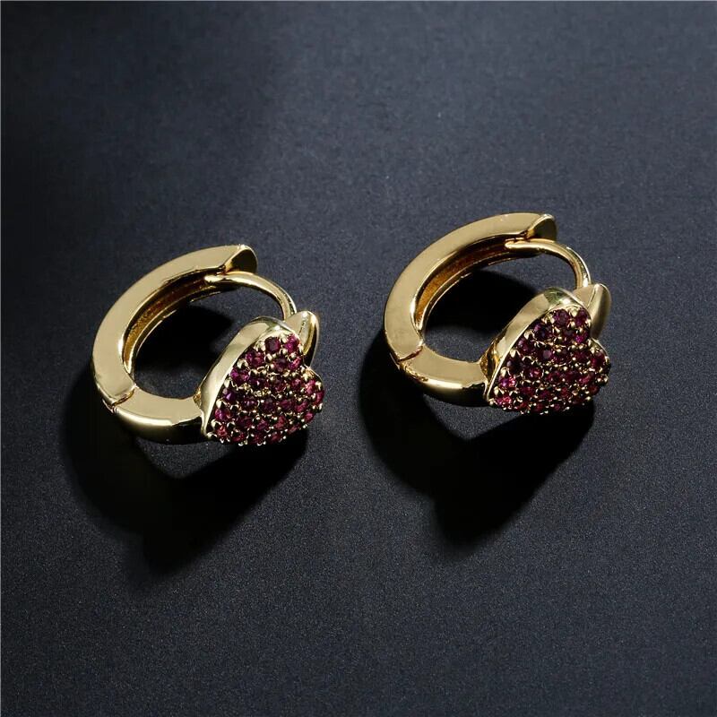 送料無料 かわいいハートゴールドカラーフープイヤリング女性女の子光沢のあるキュービックジルコンチャームウェディングジュエリー 大人ガーリー スウィート キュート カジュアル 指輪 AE1212332233222086593658