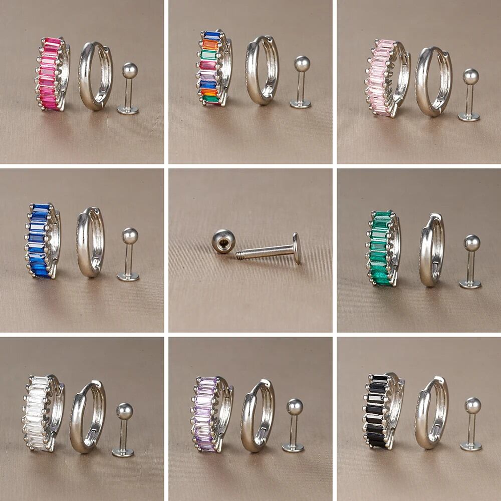 送料無料 3 個スクエアジルコンステンレス鋼フープイヤリングセット女性パンクハギーピアスジュエリーウェディングパーティー記念日 指輪 AE1212332233256101352418