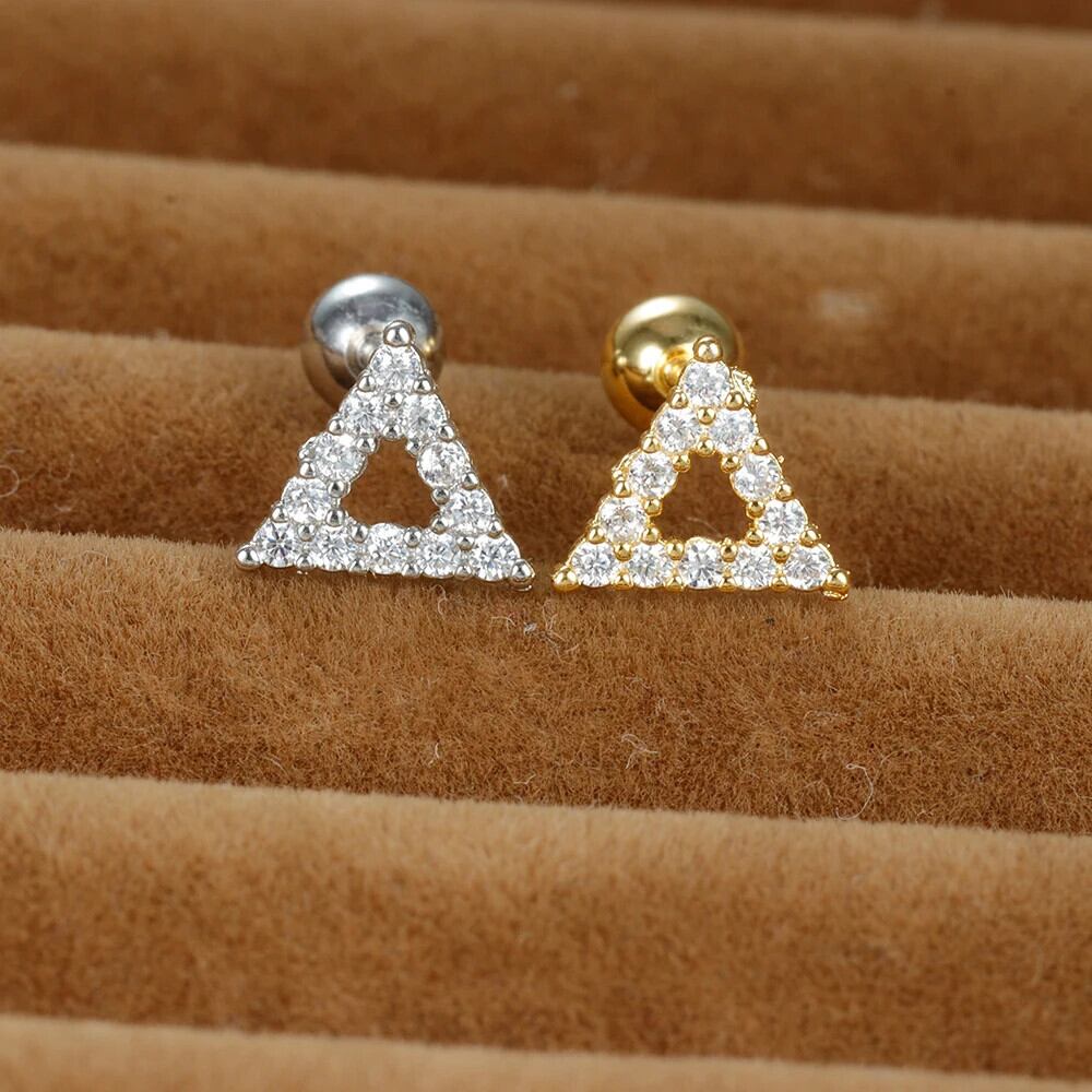 送料無料 1pc 316L ステンレス鋼トライアングルミニジルコン軟骨ピアススタッドイヤリング女性ヘリックス珠ピアスボディジュエリー AE1212332233233894550554