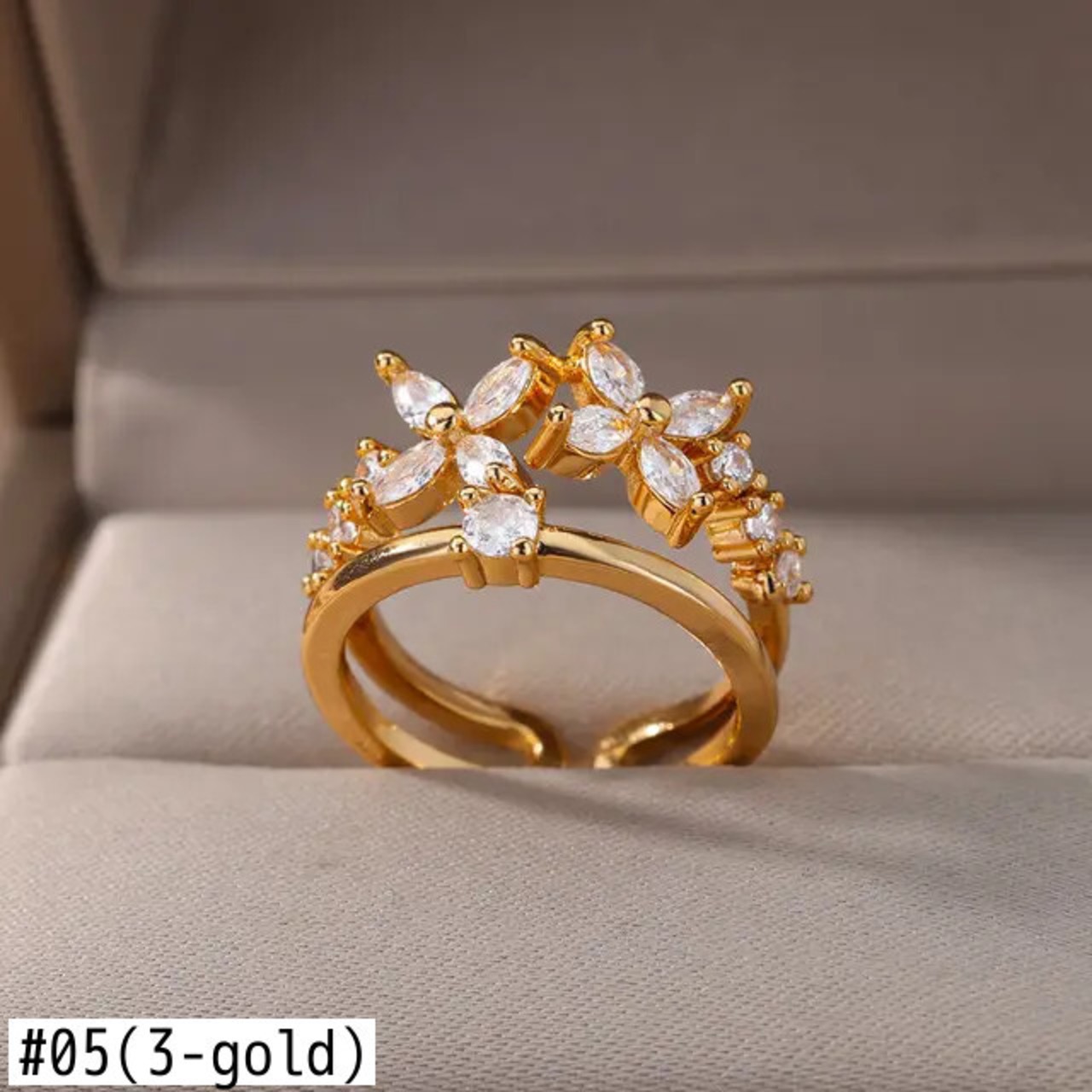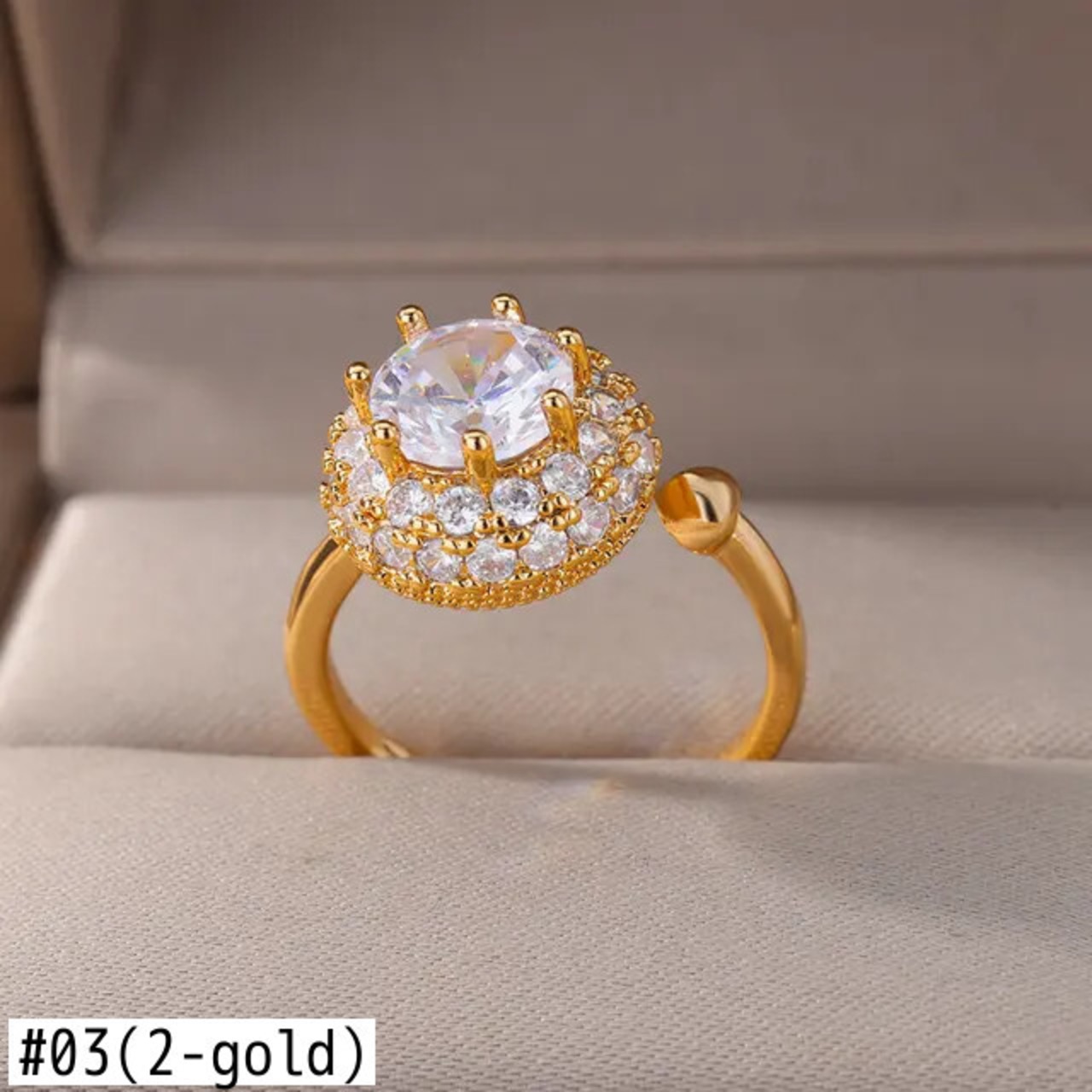 送料無料 高級ジルコン調節可能なステンレス鋼オープニングリング女性 2023 指ジュエリーウェディングパーティーガールのセクシーなリング アジャスタブル 指輪 AE1212332233267000358575