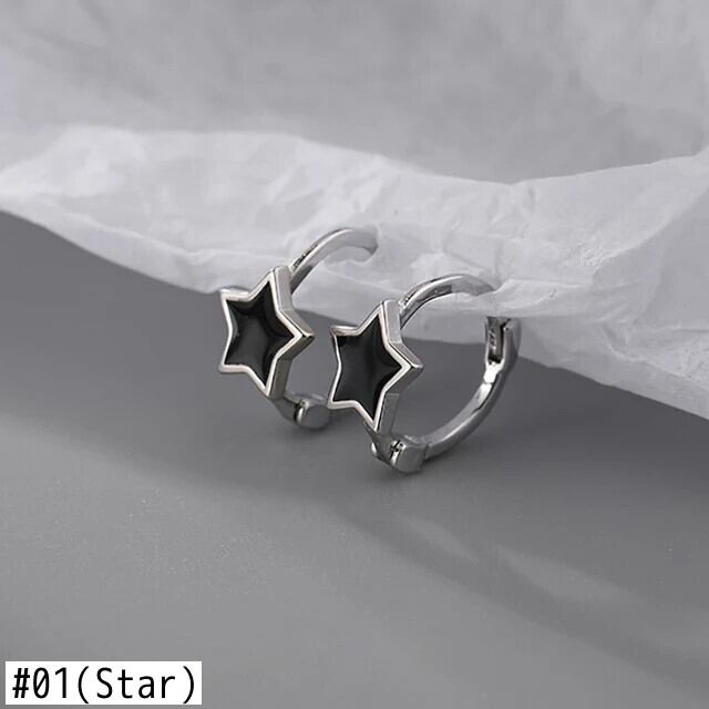 送料無料 シンプルなブラックエナメルスターペンダントフープイヤリング女性ステンレス鋼ハートスクエアイヤリングジュエリーパーティーギフト oorbellen 指輪 スクウェア AE1212332233253308101724
