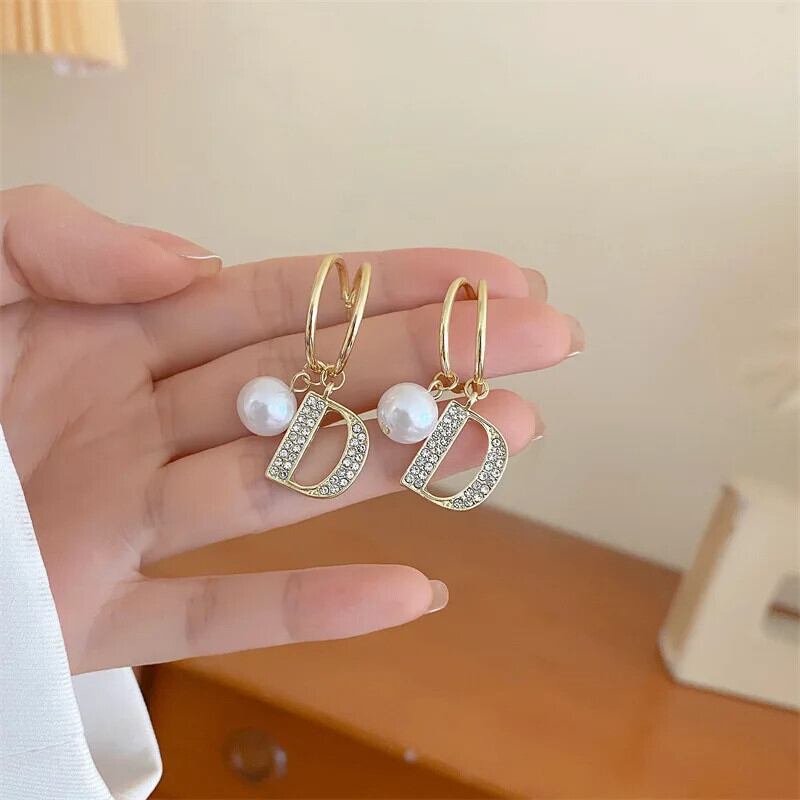 送料無料 2021 Clic レターパール D 字型ペンダントイヤリング女性ジュエリーウェディングパーティー珍しい女の子のイヤリング 真珠 指輪 AE1212332233266191464849