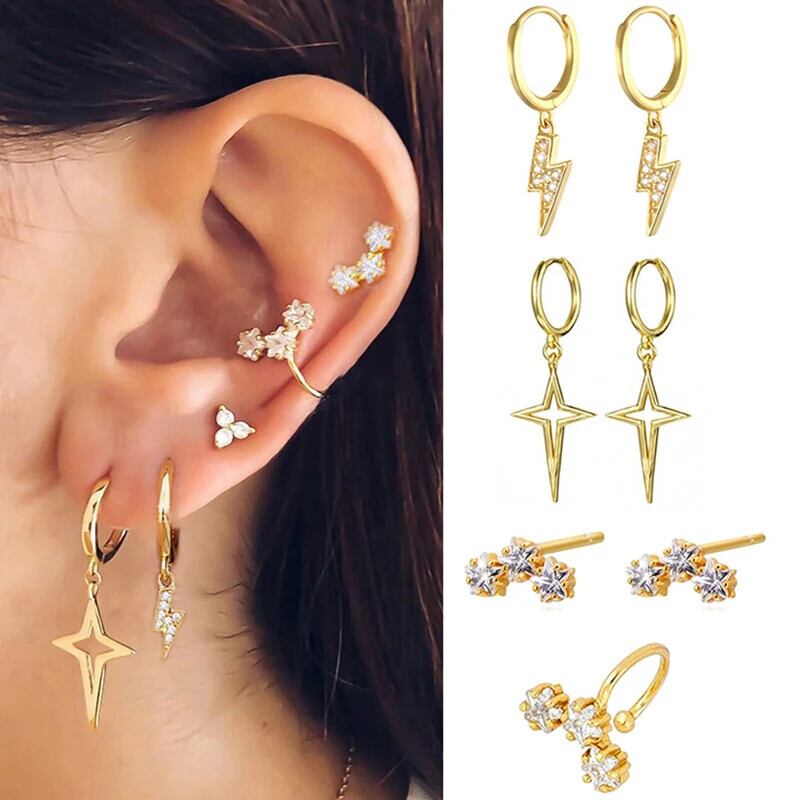 送料無料 ゴールドシルバーカラー銅稲妻クロスピアスイヤリング女性ジルコン耳カフクリップイヤリング珍しいウェディングジュエリー 指輪 銀 AE1212332233274788886765