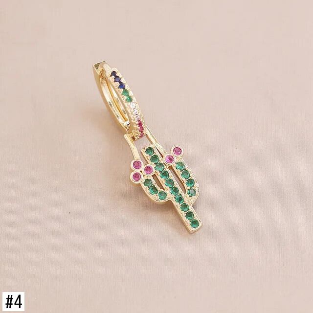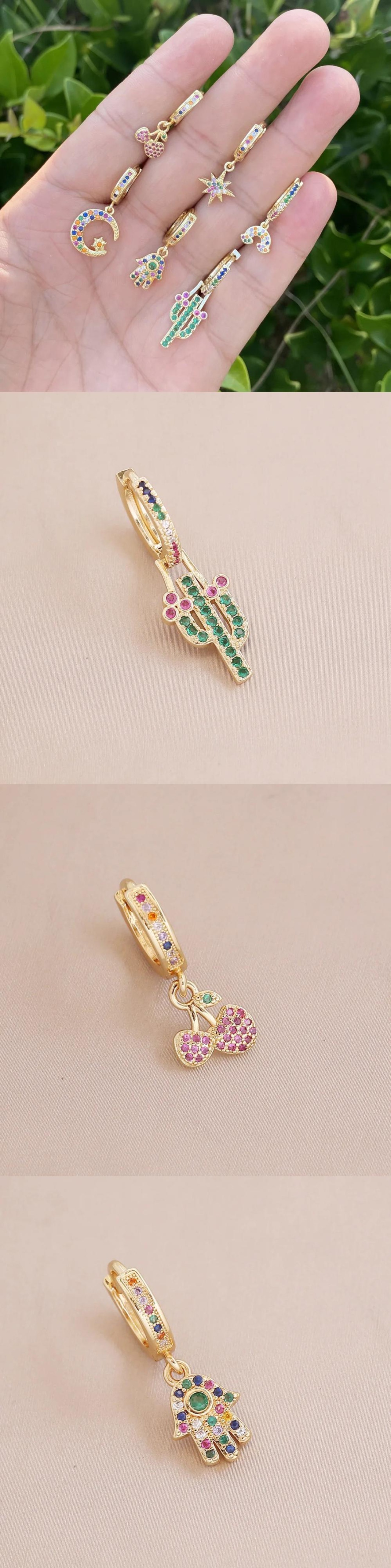 送料無料 1 ピースステンレス鋼 CZ フープイヤリング絶妙なスターサボテンチェリームーンピアスイヤリング高級ジュエリー女性 AE1212332233294204700042