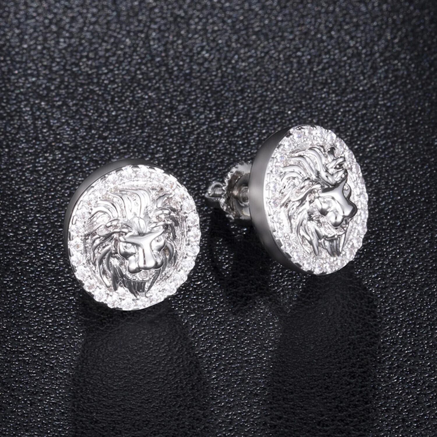 送料無料 パンクジルコンマイクロ舗装ライオンヘッドラウンドスタッドピアスゴールドシルバーカラーアイスアウトブリンブリンイヤリング女性男性ヒップホップジュエリー 指輪 銀 AE12123322332473822774