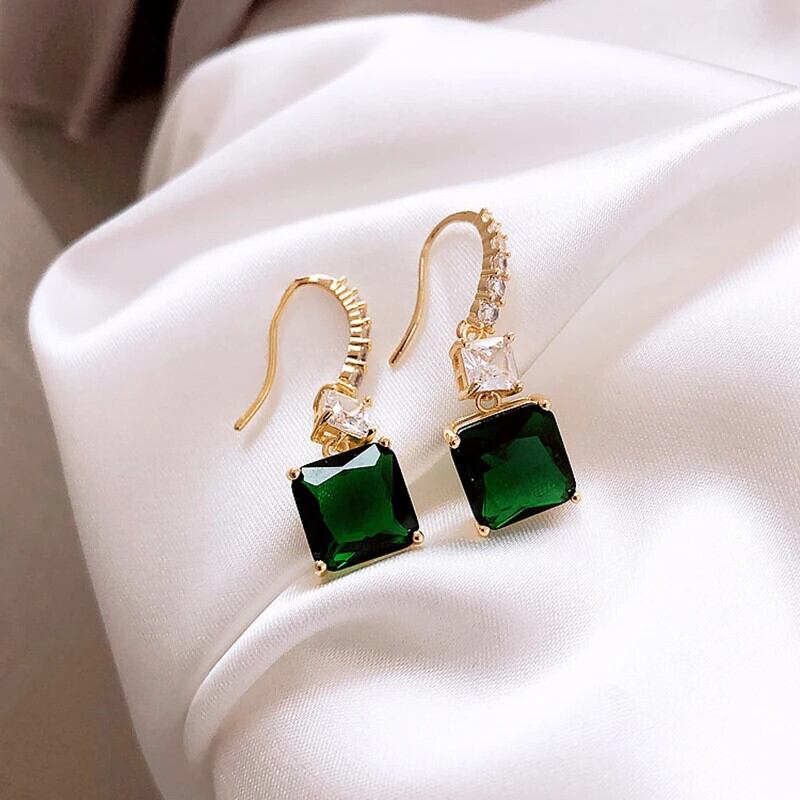 送料無料 グリーン CZ ジルコンクリスタルスクエアペンダントイヤリング女性ガールウェディングパーティージュエリーセクシーな女の子の珍しいイヤリング 指輪 スクウェア AE1212332233250865175102