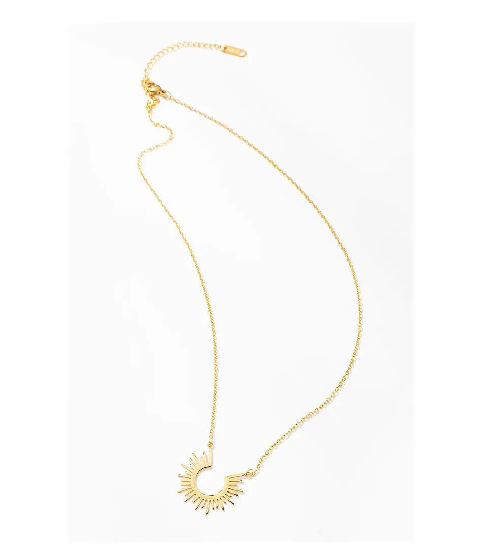 送料無料 ステンレス鋼ジュエリー幾何ペンダントネックレス女性ゴールドカラー半円スパイクコラーチョーカーネックレス レース AE1212332233279058475701