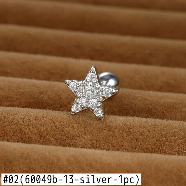 送料無料 1pc 316L ステンレス鋼五芒星ミニジルコン軟骨スタッドイヤリング女性ヘリックス珠ピアスボディジュエリー AE121233223327370045939