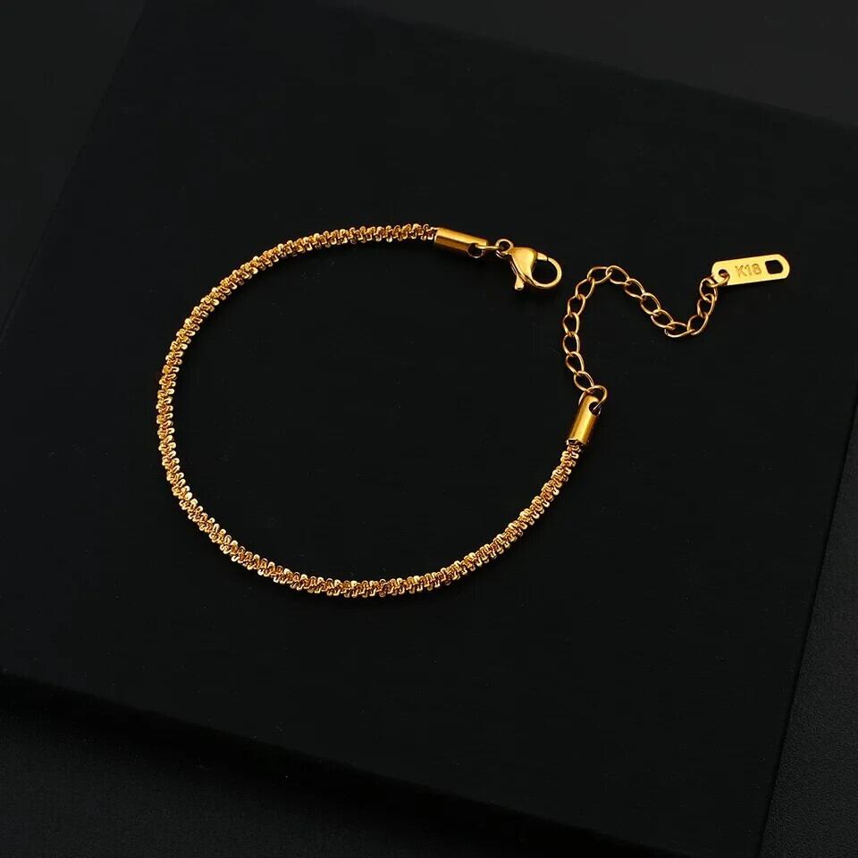 送料無料 ゴールドカラーチャーミングフラッシュツイストロープチェーンブレスレット女性レディステンレス鋼手首ジュエリー長さ調節可能 アジャスタブル AE121233223323995071521