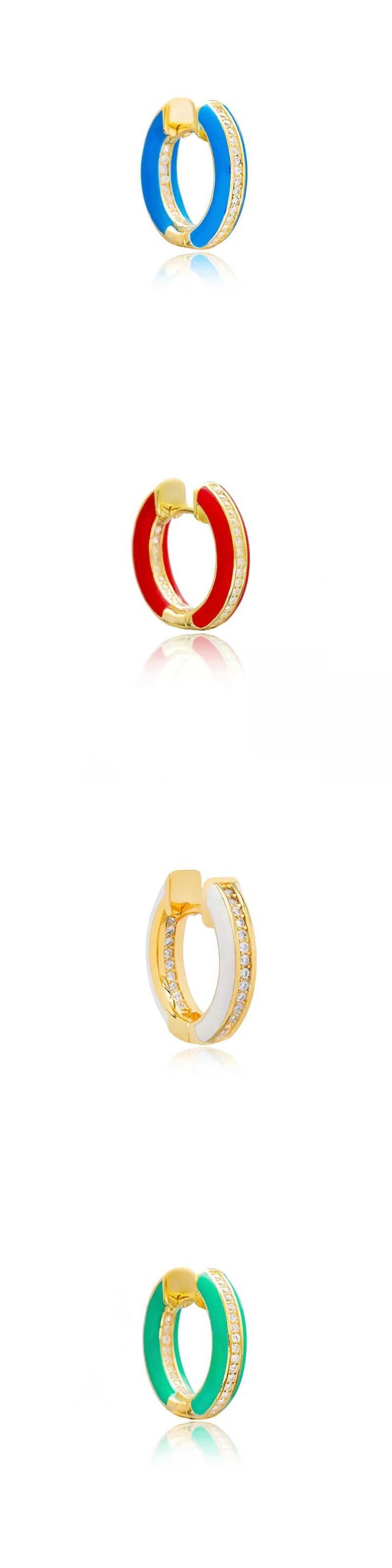 送料無料 1pc ステンレス鋼のカラフルなエナメルジルコンラウンドフープイヤリング女性チャーム CZ サークル幾何学的な軟骨イヤリング INS ジュエリー 指輪 AE1212332233239000967037