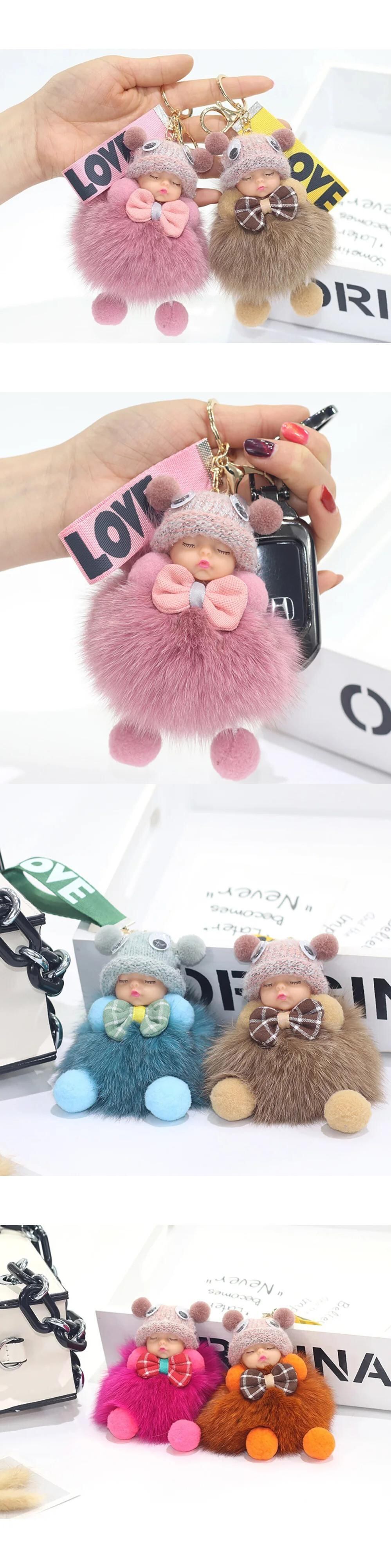 送料無料 カラフルな睡眠ベビードール車のキーホルダーぶら下げピース毛玉バッグペンダントかわいいふわふわファーポンポンキーリングホルダーおもちゃ 大人ガーリー スウィート キュート カジュアル 指輪 チェーン AE1212332233276848532039
