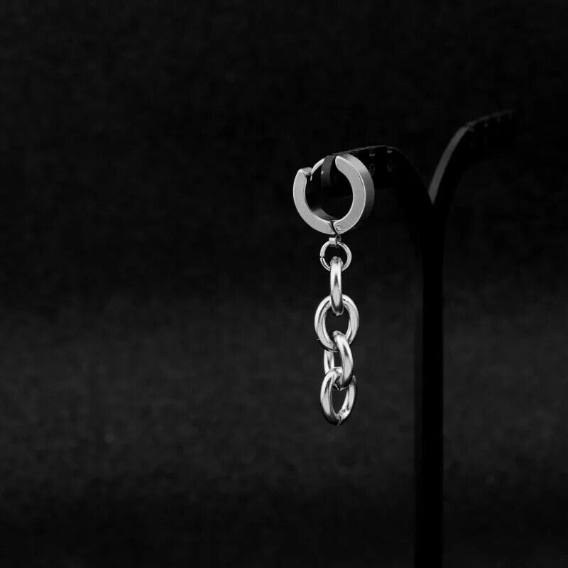 送料無料 1PC パンクステンレス鋼リンクチェーンイヤリングヒップホップ耳ジュエリー分厚い幾何イヤリング女性ティーンガールズ男性 指輪 AE1212332233272002400388