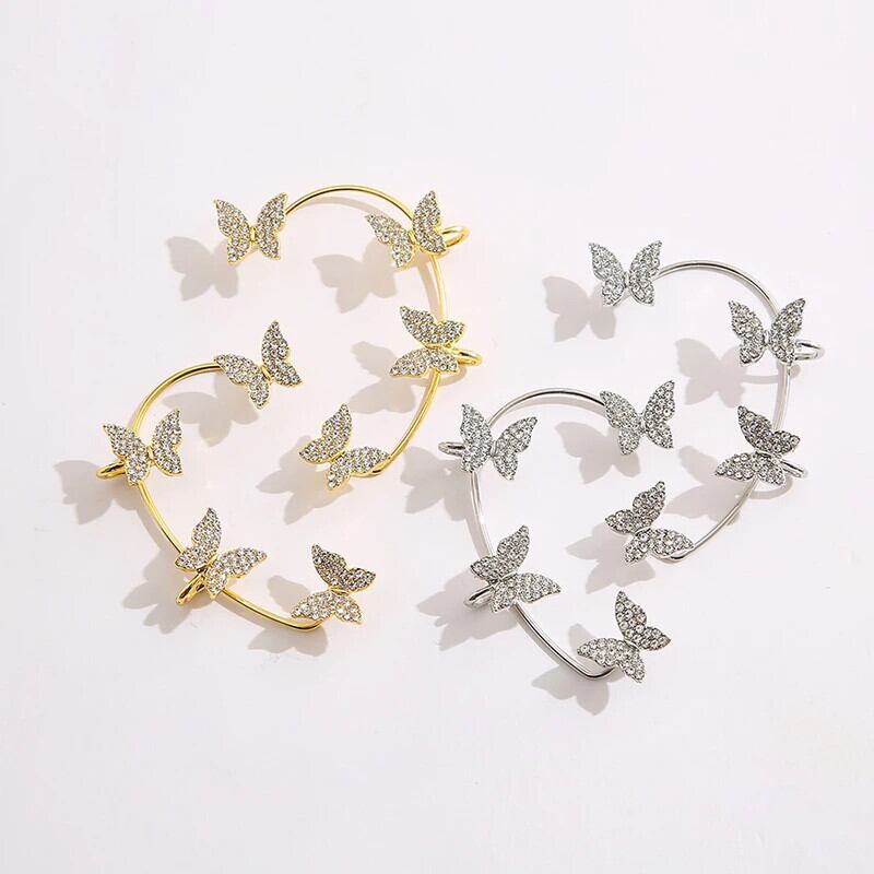 送料無料 スタイル蝶耳クリップピアスなし女性スパークリングジルコン耳カフクリップイヤリングウェディングパーティージュエリーギフト 指輪 AE1212332233232055386371