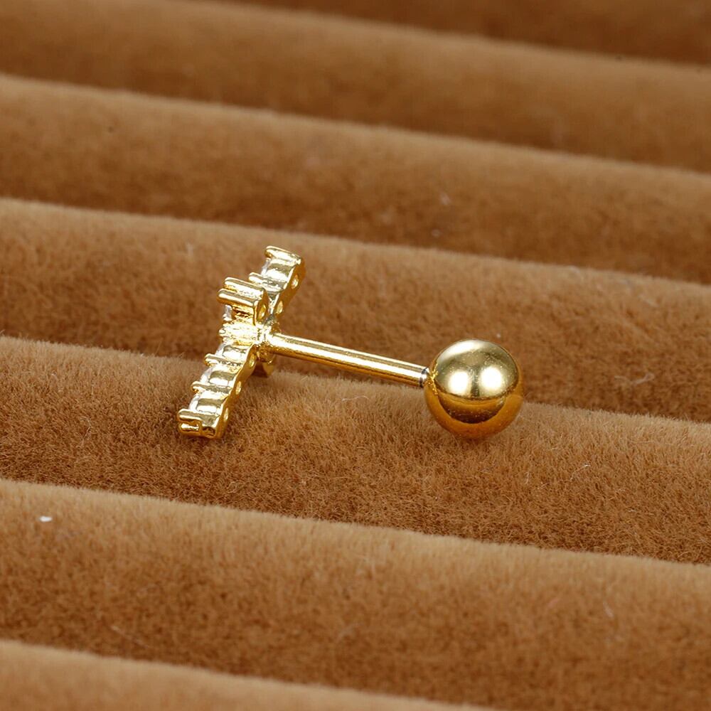 送料無料 1pc 316L ステンレス鋼クロスミニジルコン軟骨ピアススタッドイヤリング女性ヘリックス珠ピアス女性のボディジュエリー AE1212332233248678922234