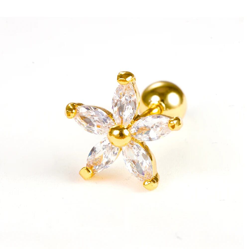 送料無料 1pc 316L ステンレス鋼ビッグサイズ 5 花びら花ミニジルコンスタッドピアス女性らせん珠軟骨ピアスボディジュエリー イヤリング フラワーデザイン AE1212332233297294289894