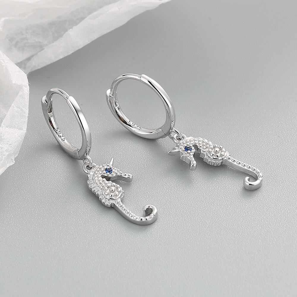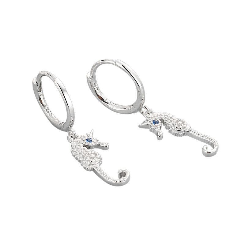 送料無料 ステンレス鋼ブルージルコンタツノオトシゴフープイヤリング女性パンク海馬絶妙なアニマルジュエリーギフト 指輪 AE1212332233291655302033